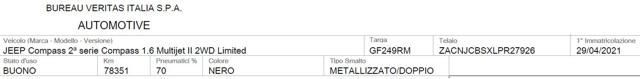 | Immatricolazione | 04/2021 |